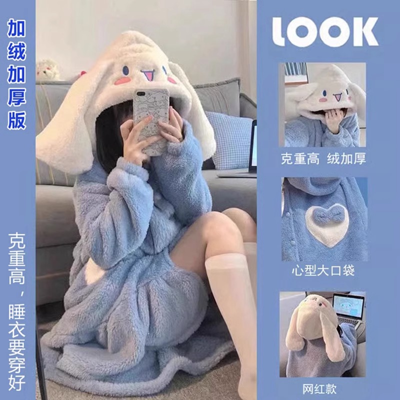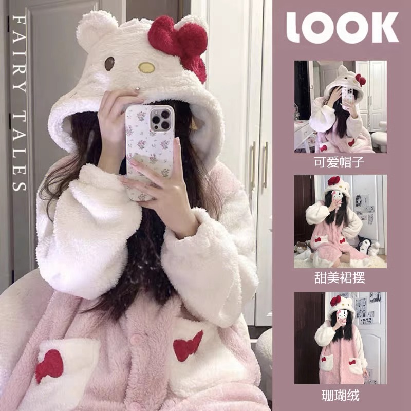 加厚长男士 秋冬季 情侣鲨鱼睡袍睡裙家居服 2025新款 珊瑚绒睡衣女款