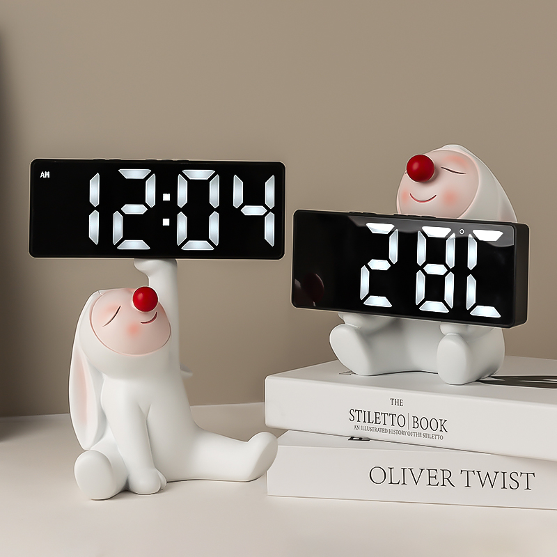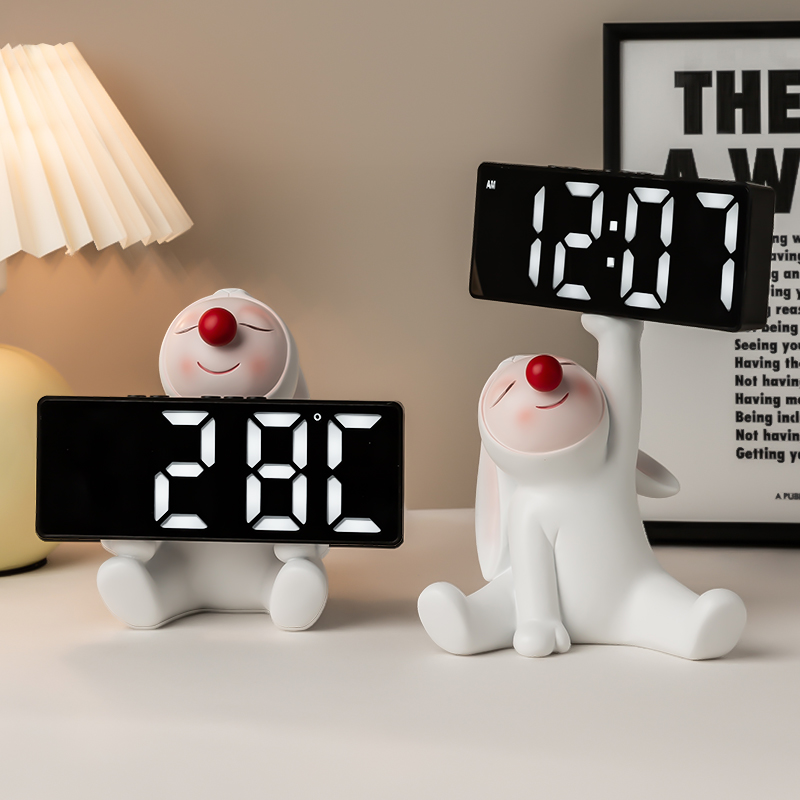 钟表摆放式 可爱兔子时钟摆件儿童卧室床头柜装 饰品电子钟闹钟台式