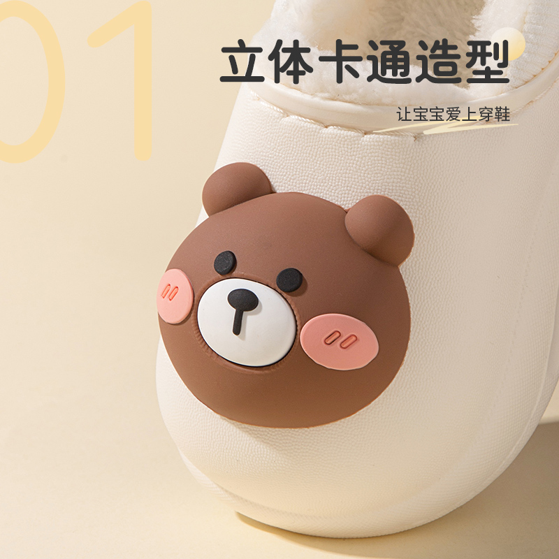 女孩 室内防滑防水幼儿轻便软底毛保暖宝宝拖鞋 儿童棉拖鞋 男童冬季