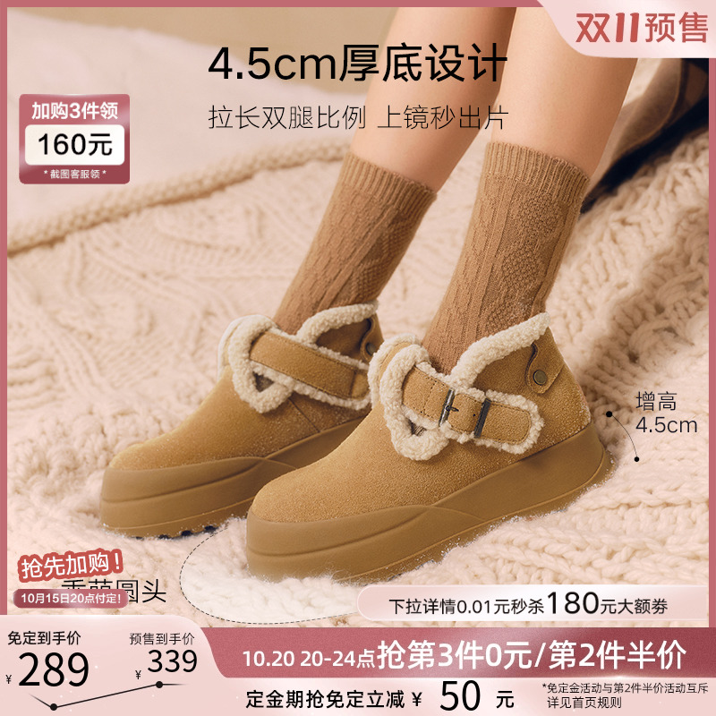 双11预售百思图冬商场新款 L5628DM4 真皮增高雪地靴加厚女棉鞋