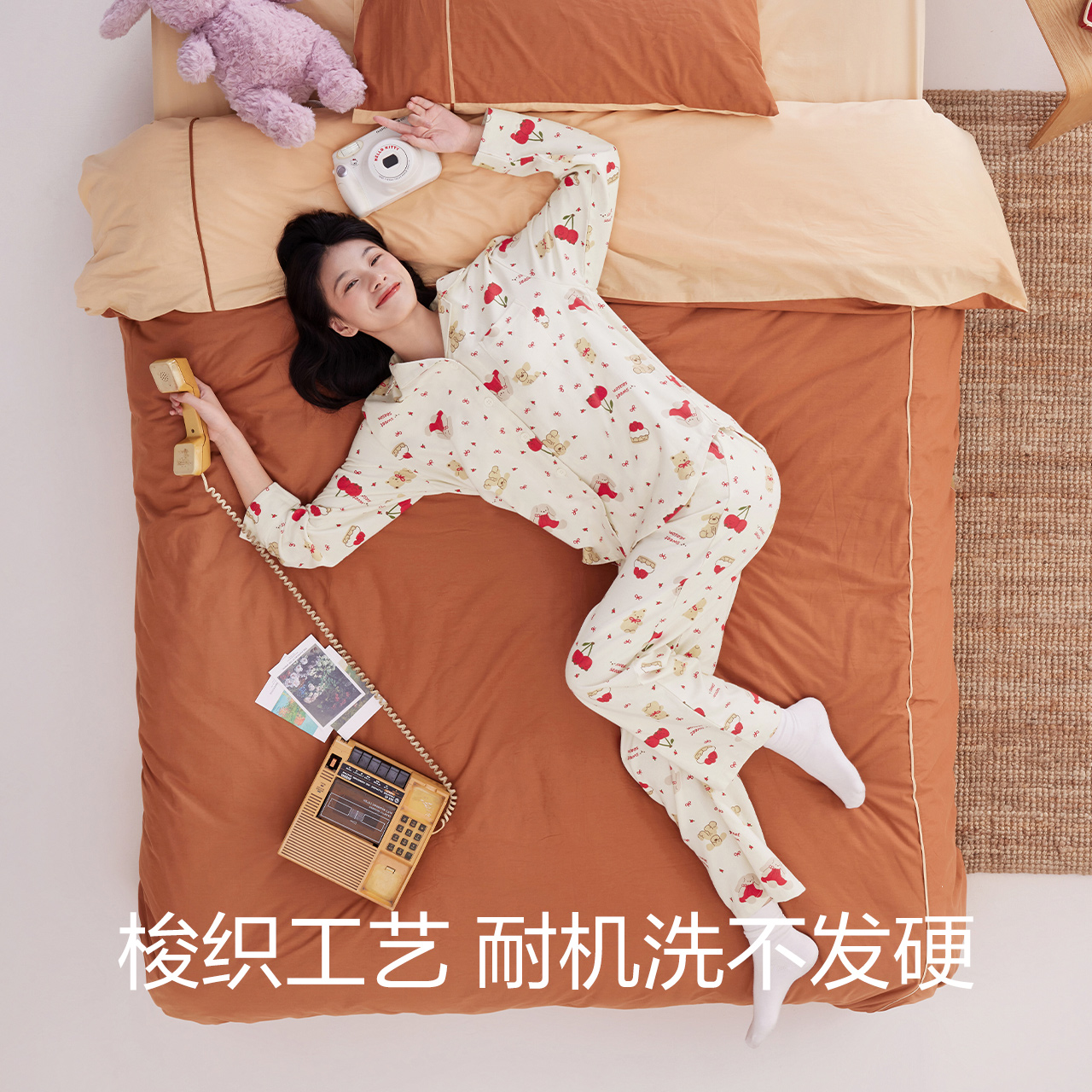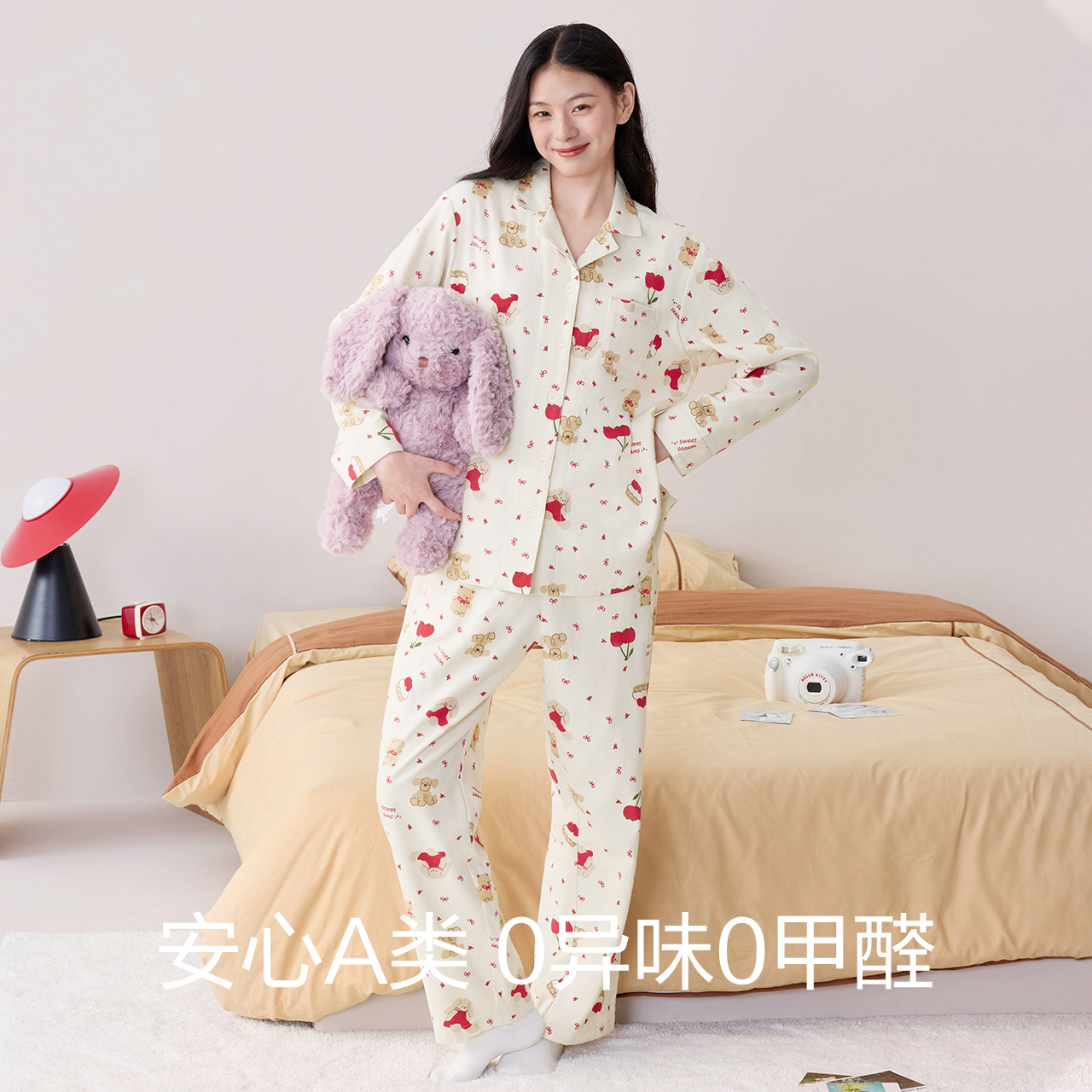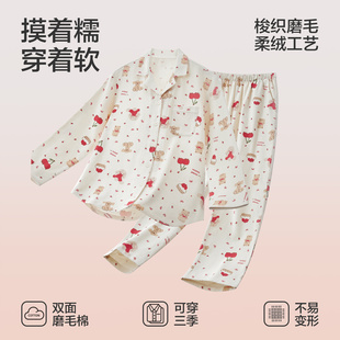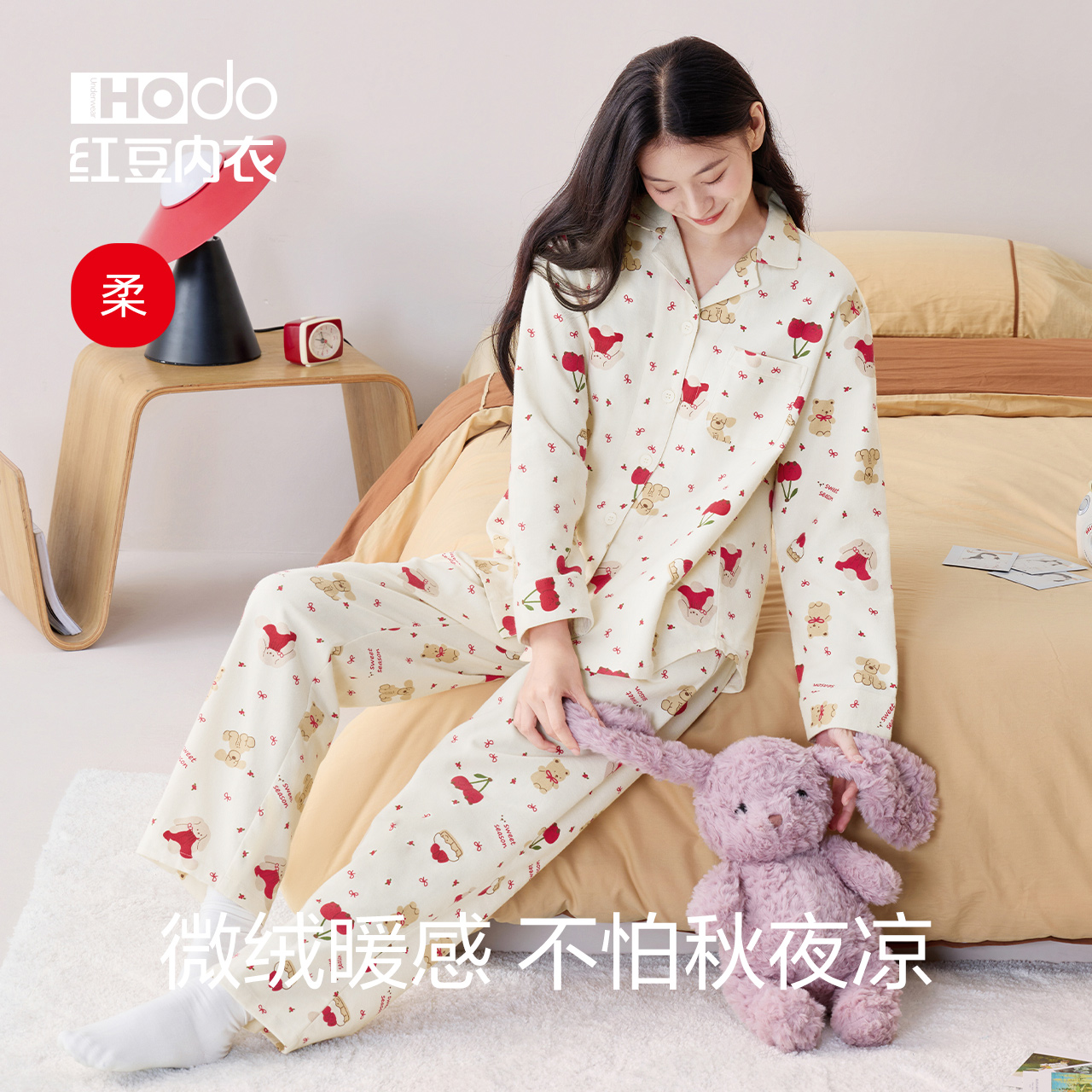 家居服套装 红豆睡衣女纯棉可爱印花长袖 梭织磨毛A类柔软全棉新款