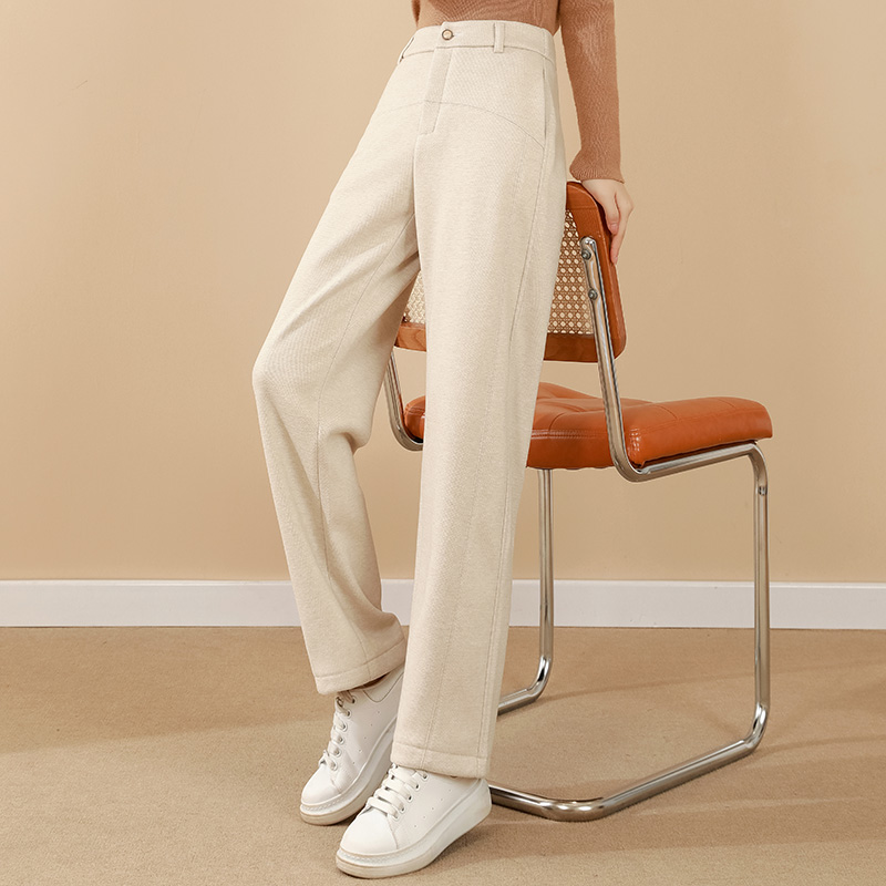 垂感宽松加绒加厚高腰羊毛休闲长裤 新款 子 女2025秋冬季 毛呢直筒裤