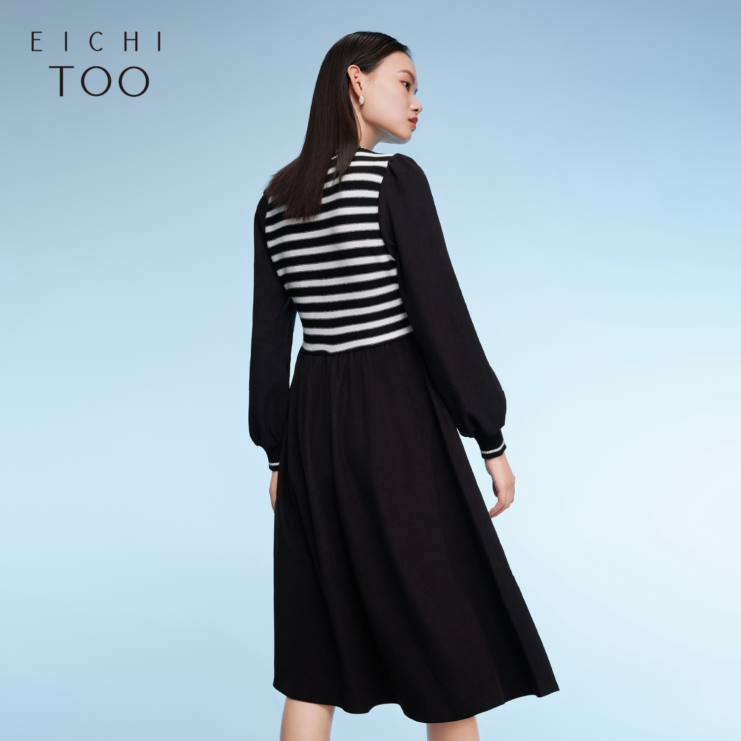 连衣裙 黑白撞色条纹拼接设计感针织衫 爱居兔冬季 经典