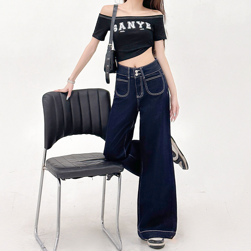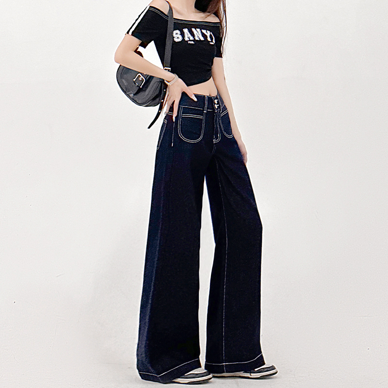 宽松显瘦不贴腿阔腿垂感马蹄喇叭裤 加绒高腰微喇牛仔裤 女2025秋季