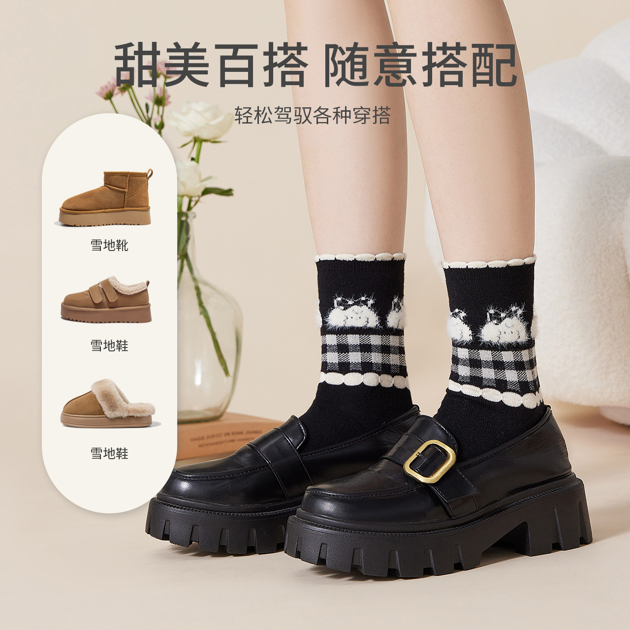长袜花边配勃肯鞋 爆款 纯棉无骨2025新款 堆堆袜子女中筒袜春秋冬季