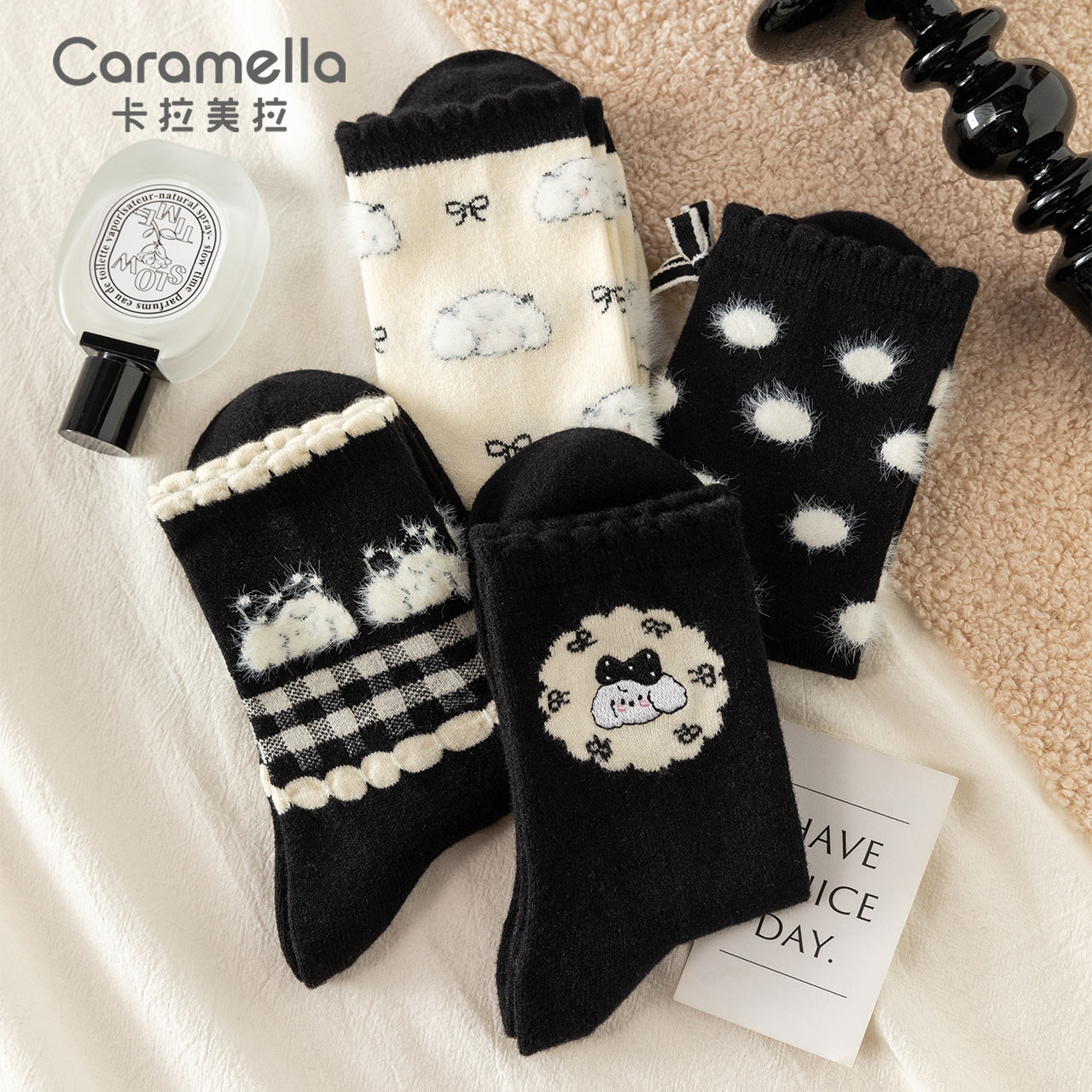 棉竹屋袜子福袋秋冬中筒袜加厚袜子纯棉男女款 3双装 袜子清仓