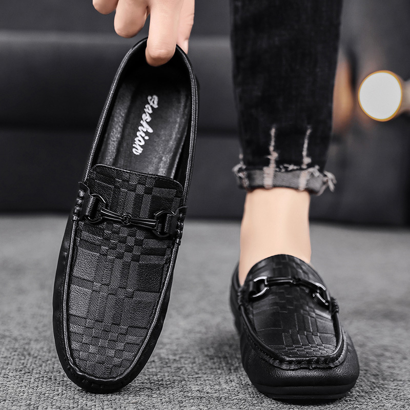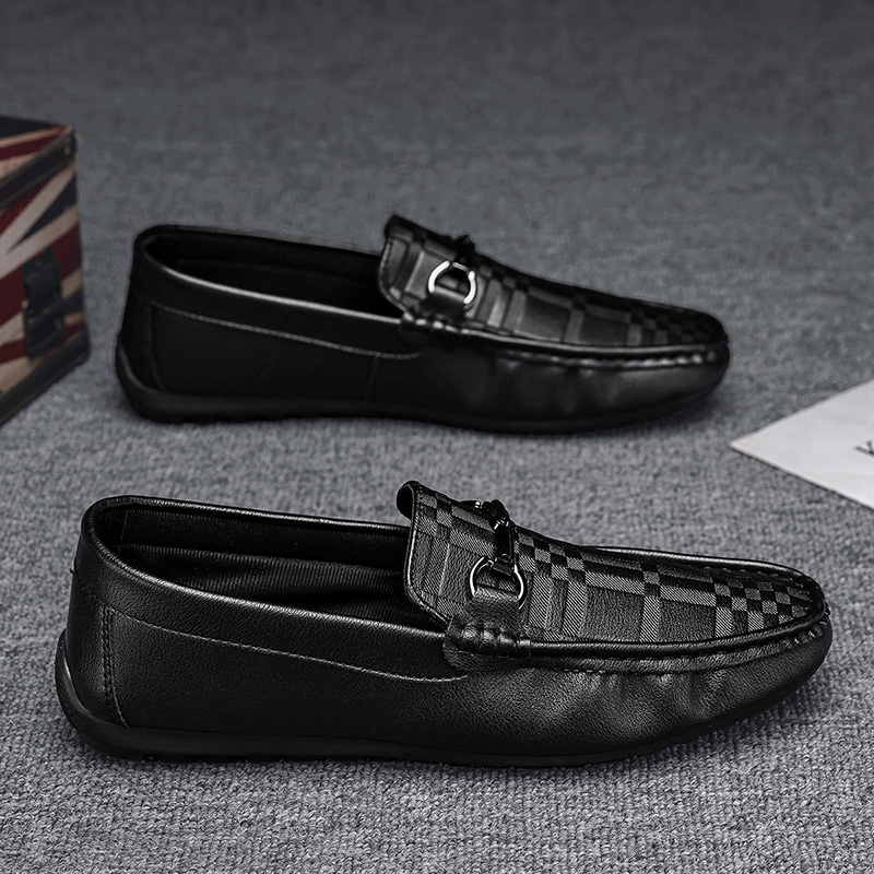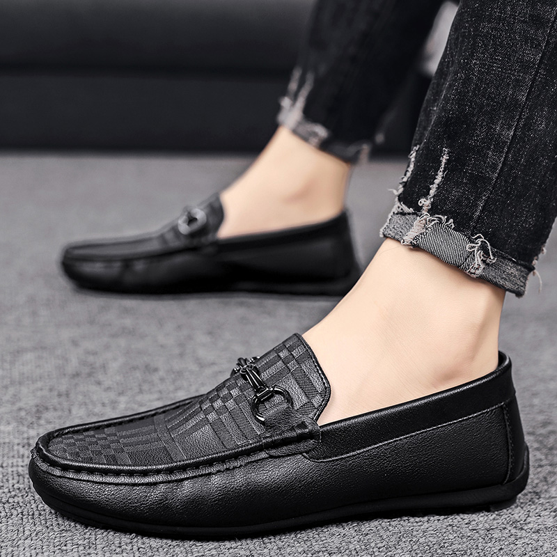 懒人一脚蹬开车软底工作黑色潮鞋 英伦风休闲商务皮鞋 秋季 豆豆男鞋