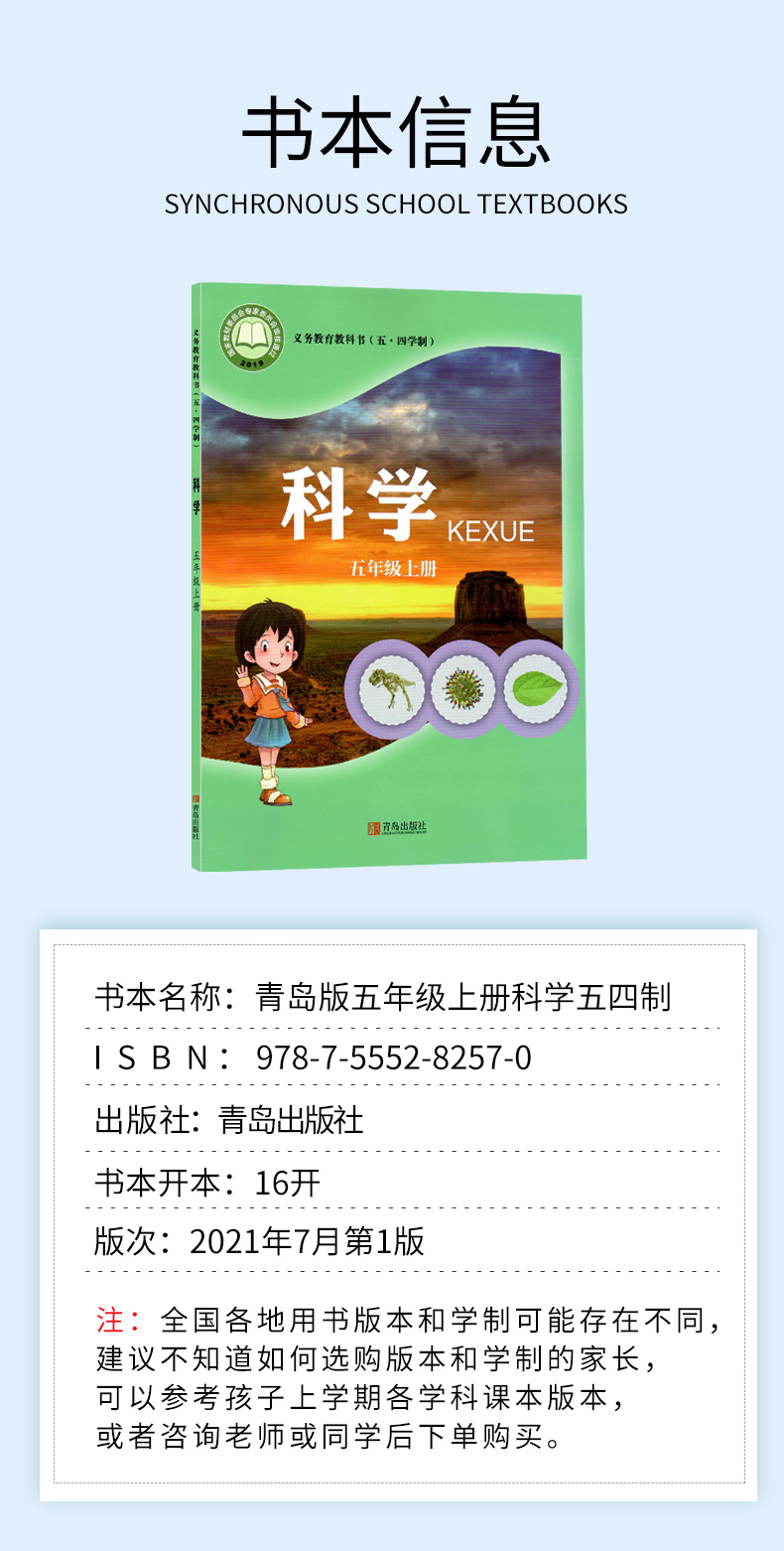 五年级上册学生活动手册全套2本青岛版 2022五四学制五年级上册科学书 五年级科学上册课本教材54制科学活动手册教科书 包邮 正版