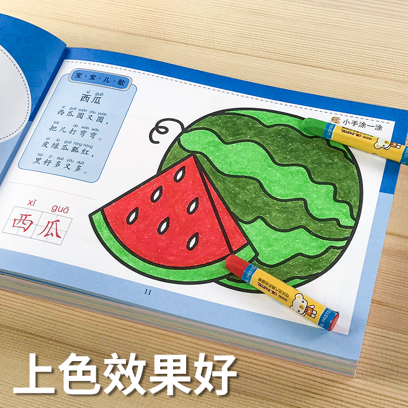 6岁4水果蔬菜动物植物启蒙认知书籍专注力训练动手动脑智力开发游戏书幼儿园涂鸦填色绘本图画绘画册套装 儿童涂色书宝宝画画本3