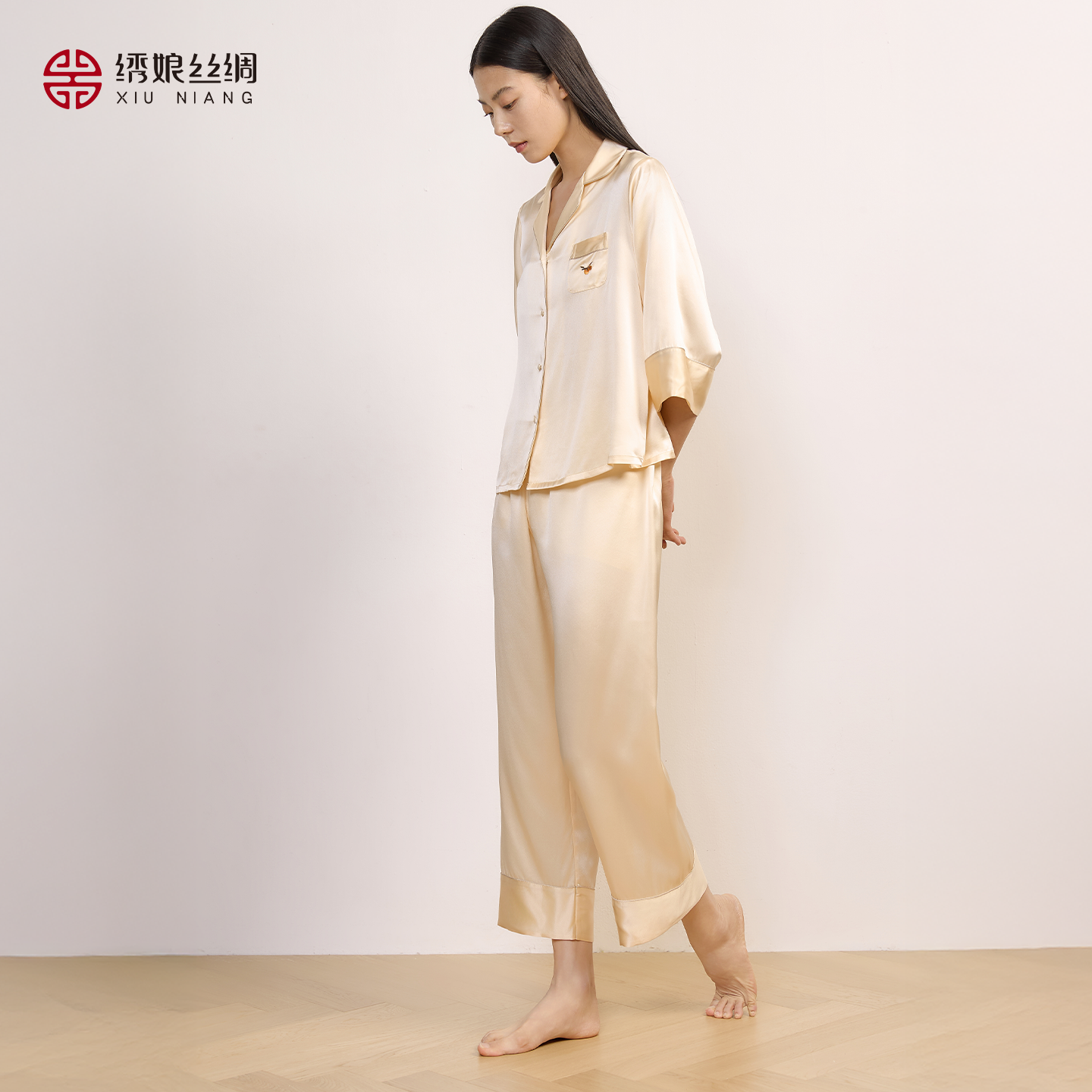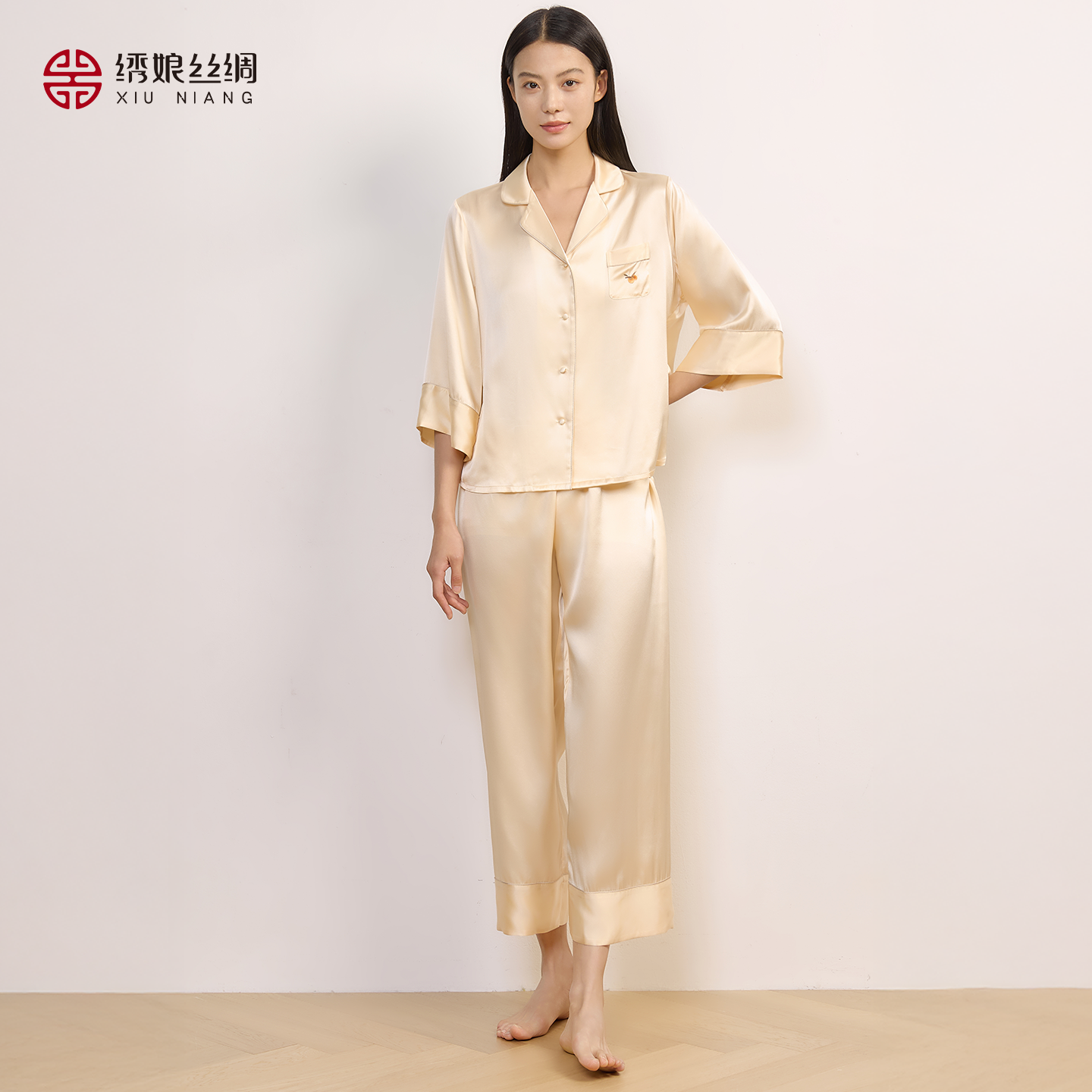 刺绣苏绣高级感家居服 100%桑蚕丝新款 绣娘丝绸真丝睡衣女款 礼盒装