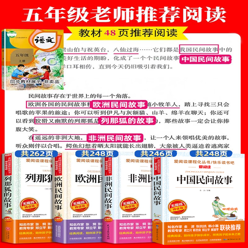 中国民间故事五年级必读课外书上册田螺姑娘中国民间故事精选必读老师推荐 故事 欧洲非洲民间故事小学生阅读书籍快乐读书吧列那狐