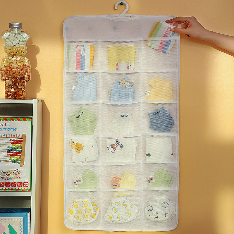内裤 儿童吸汗口水巾整理神器挂墙布艺挂袋 袜子收纳袋衣柜门后挂式