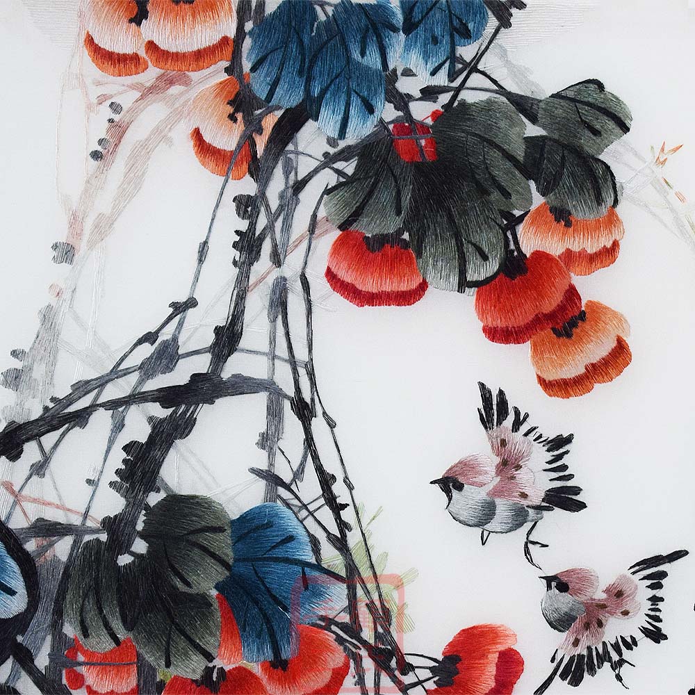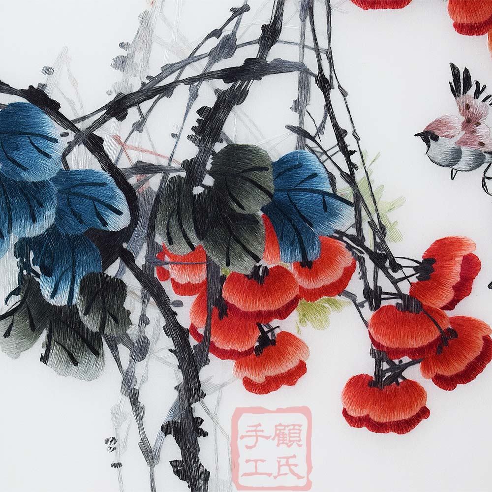 饰画 事事如意好事成双小幅餐厅卧室装 54顾氏手工苏绣柿子双鸟