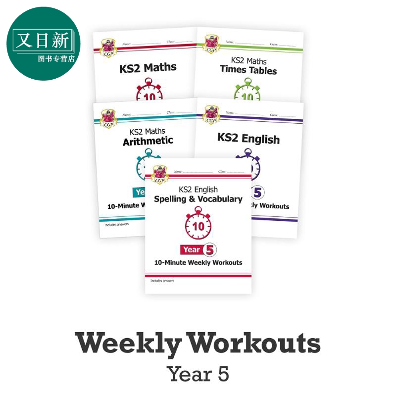 Maths 含答案 英语数学练习5册套装 Weekly Year Workouts English 小学5年级 英国CGP原版 bundle Minute