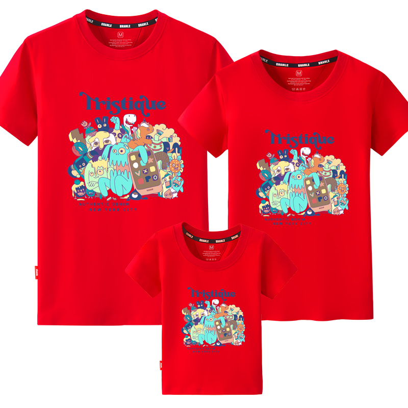 洋气短袖 亲子装 潮全家母女母子网红时尚 一家三口2025新款 T恤 夏装