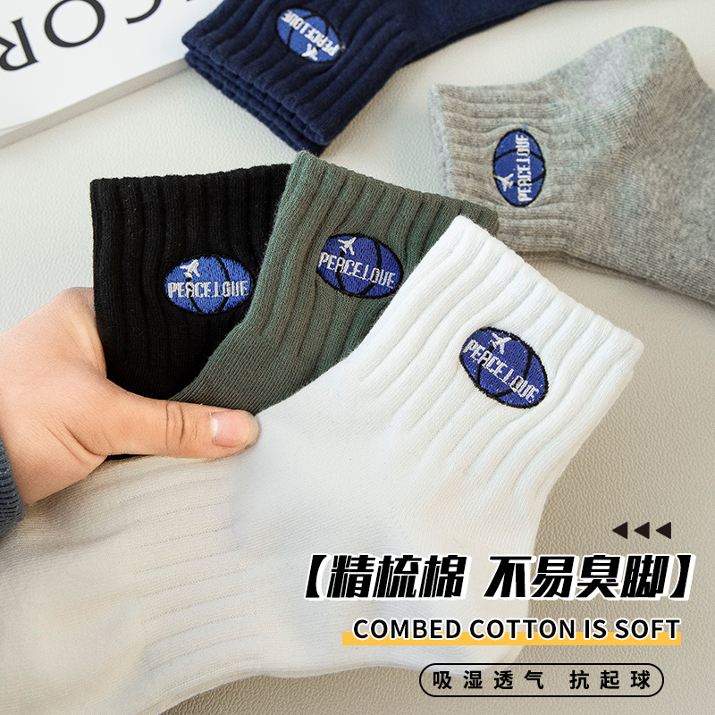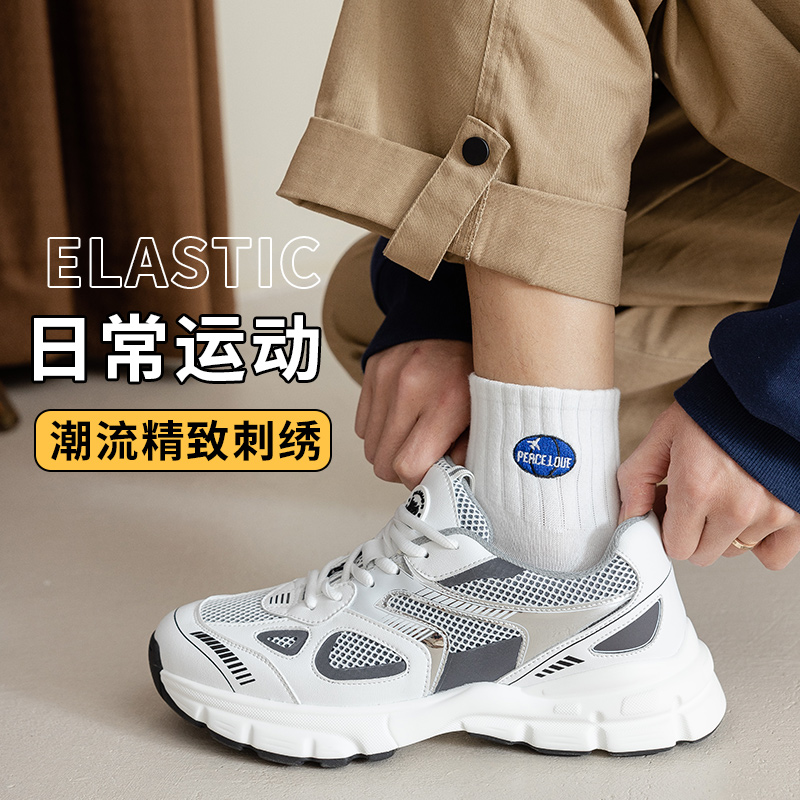 防臭吸汗男袜男生运动棉袜潮 船袜男款 白色袜子男短袜秋冬薄款 男士