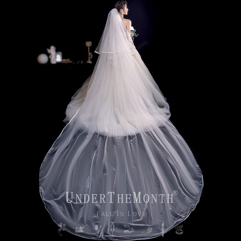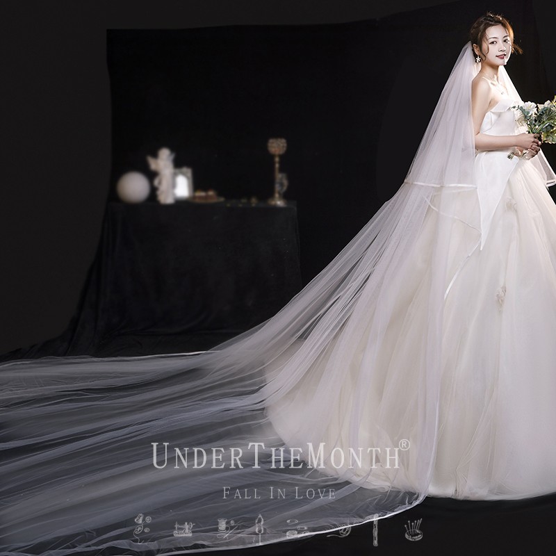新娘结婚主婚纱头纱超仙森系网红拍照道具长款 大拖尾张馨予同款
