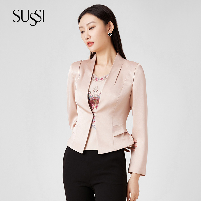 古色夏季 西装 新品 杏色通勤简约立领长袖 外套女 商场同款 SUSSI