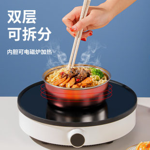 316不锈钢泡面碗带盖可沥水单个饭碗学生宿舍饭盒大容量打饭缸盆
