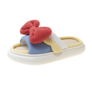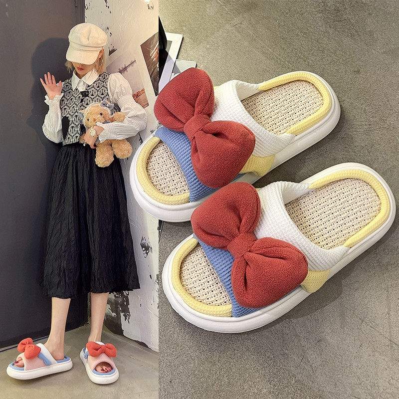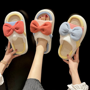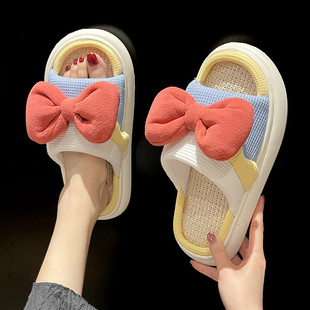 男夏季 可爱蝴蝶结拖鞋 厚底防滑情侣家居亚麻凉拖鞋 2025新款 女四季