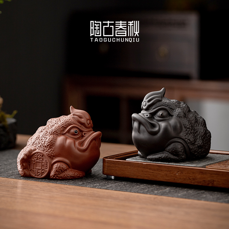 紫砂金蟾招财茶宠摆件创意精品可养功夫茶具配件茶台茶盘手工茶玩