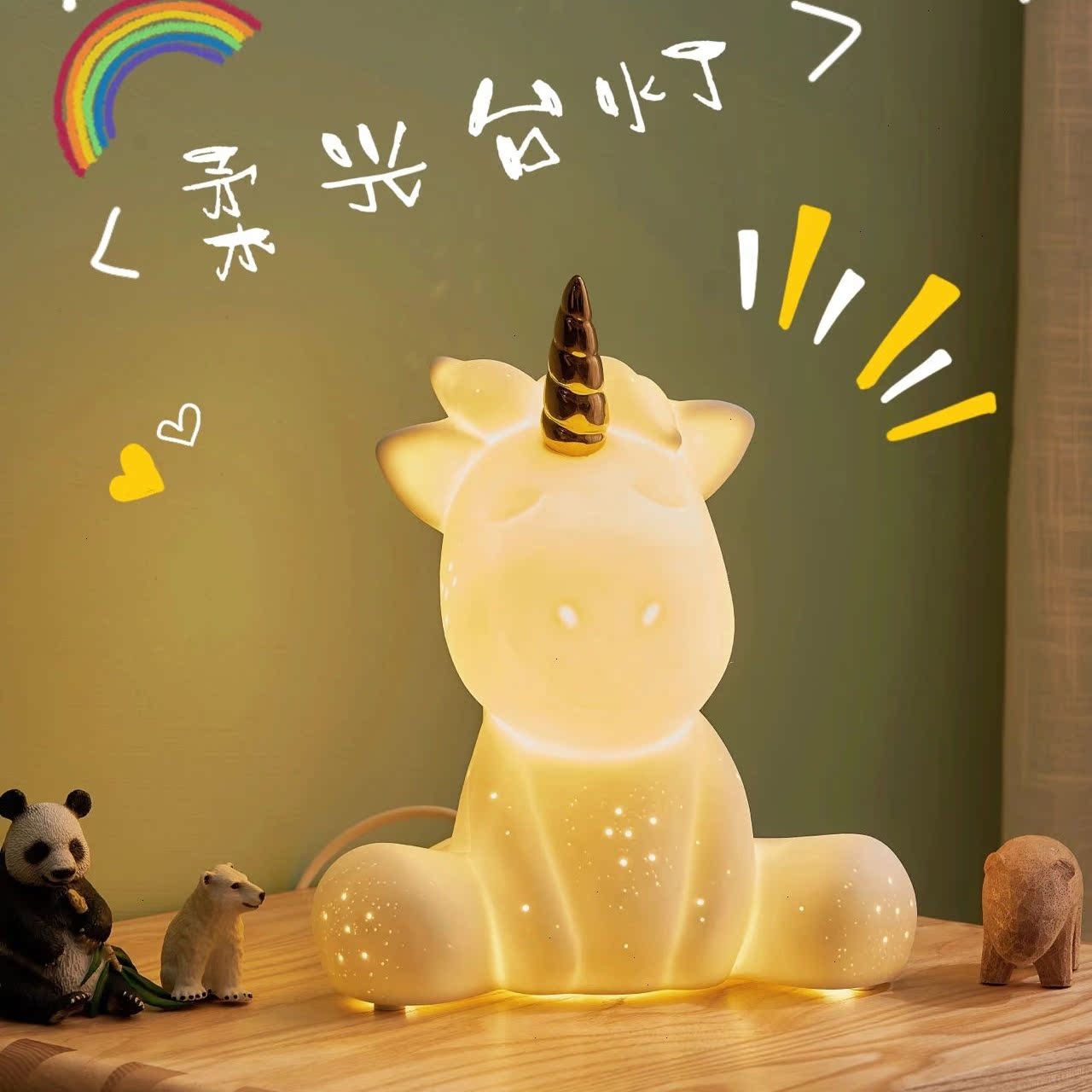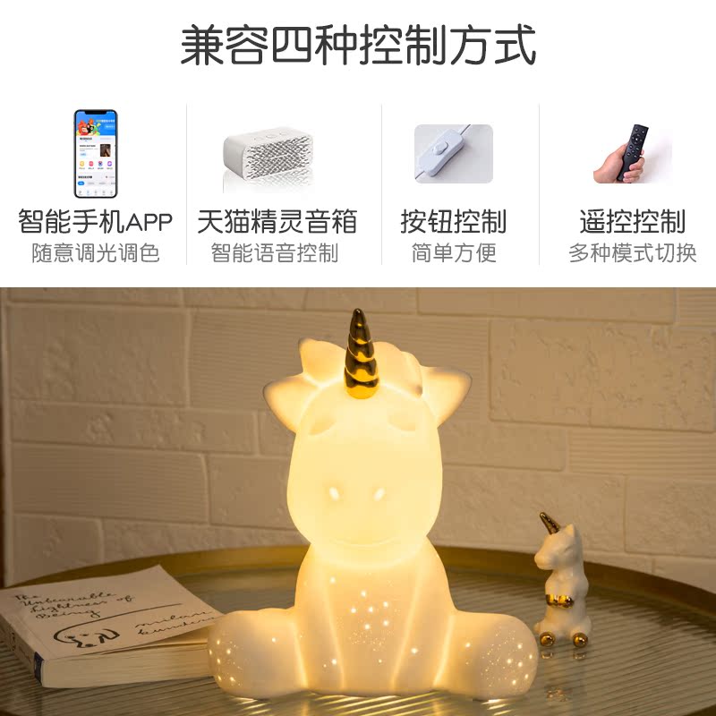 卧室床头柜台灯创意独角兽小夜灯房间装 饰灯氛围灯520情人节礼物