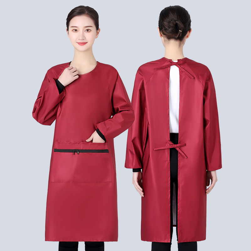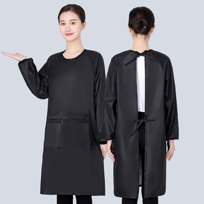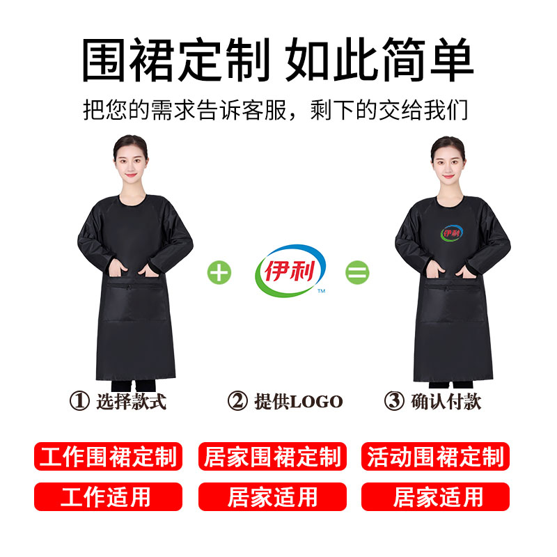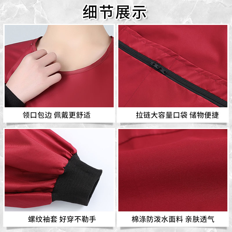 长袖 围裙定制logo印字防水拉链大口袋工作服女家用厨房大人罩衣夏
