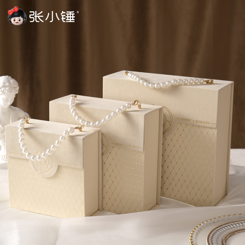 张小锤山茶花礼盒礼品盒口红香水包装 珍珠手提高级礼物盒子 盒法式