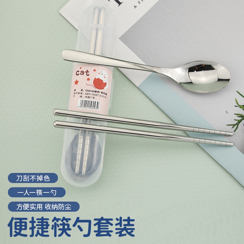 304不锈钢上班族成人筷子勺子二件套单人学生儿童便携餐具收纳盒