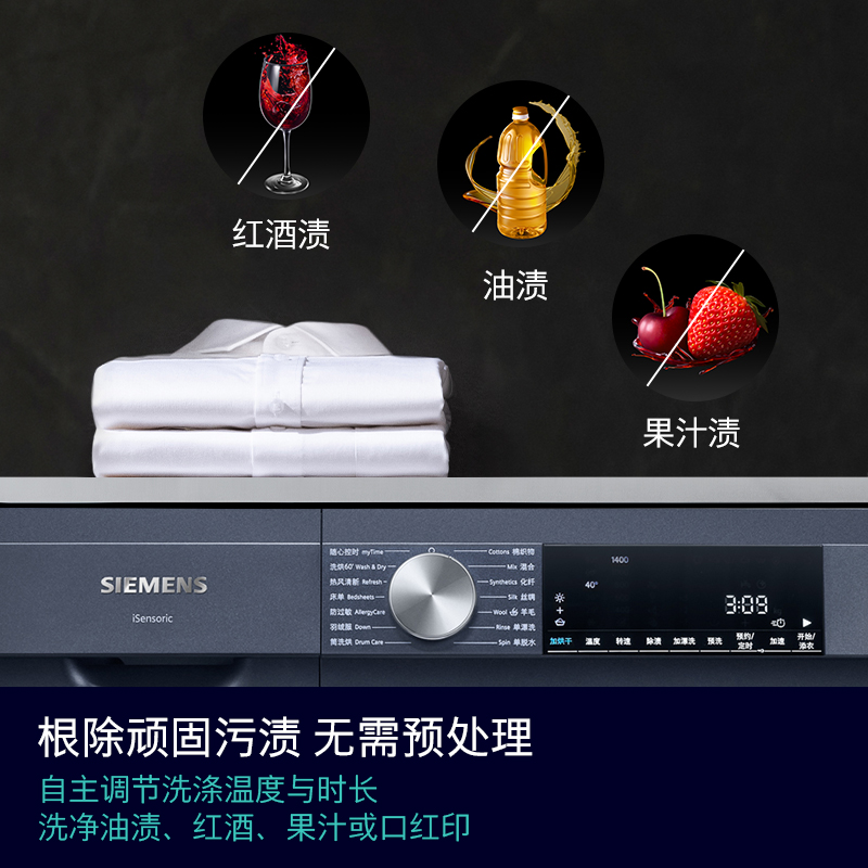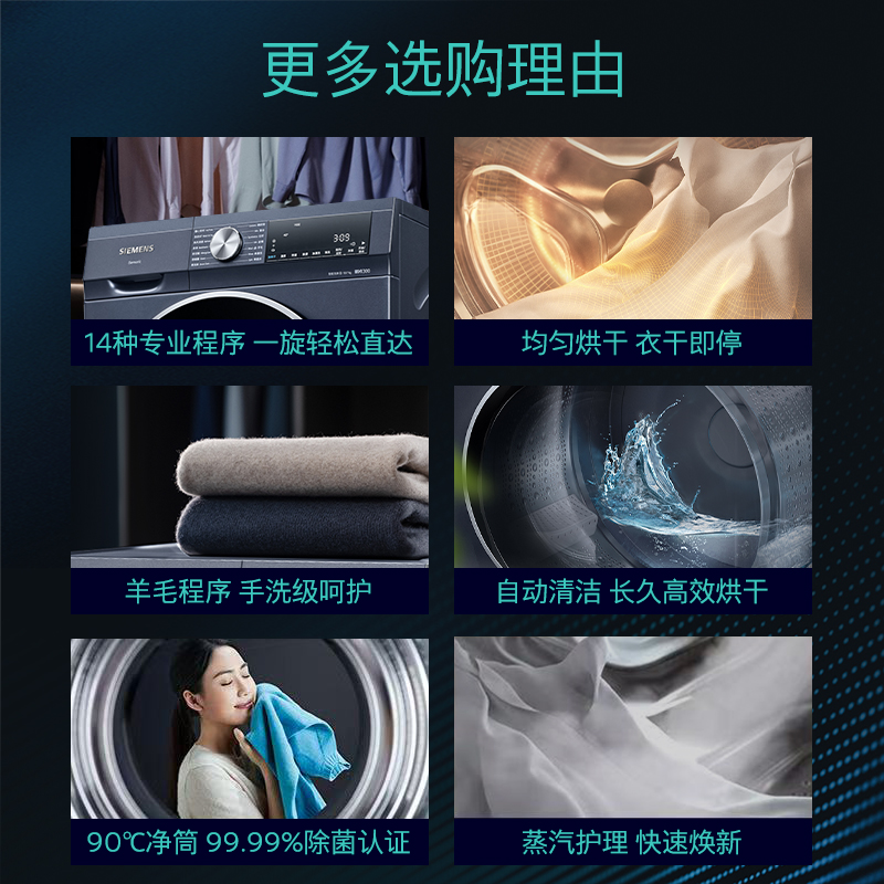 1U10 西门子10公斤滚筒全自动智能除渍洗衣机1U00 蓝宝石