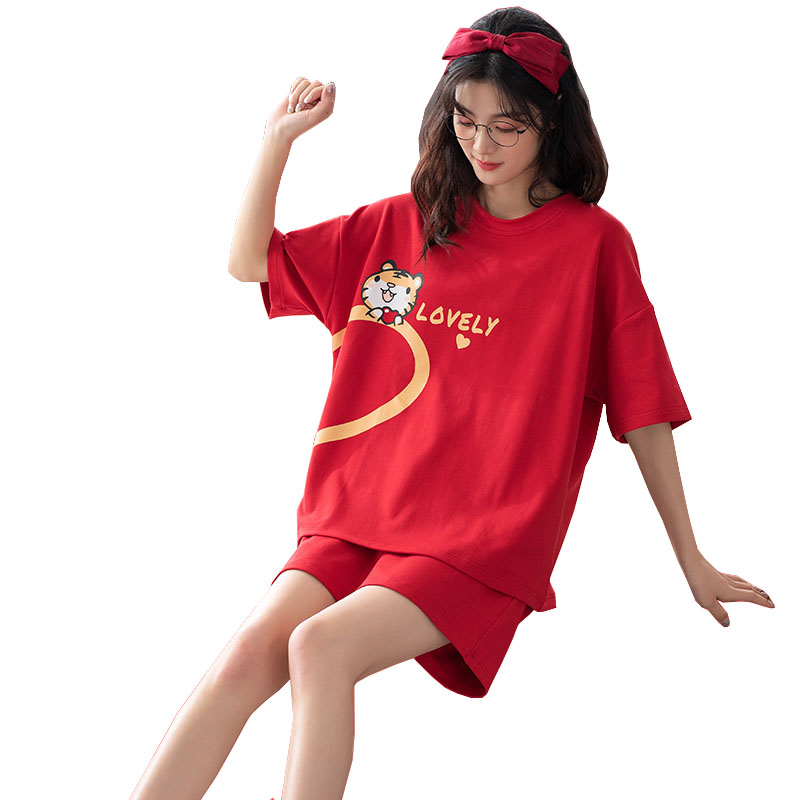 短裤 纯棉短袖 可爱甜美宽松家居服学生两件套 新款 睡衣女2022年夏季