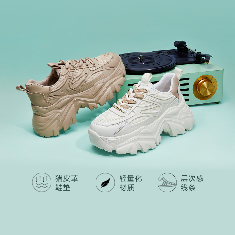 奥莱 秋新款 Tata他她网面透气厚底老爹鞋 女显脚小休闲运动鞋