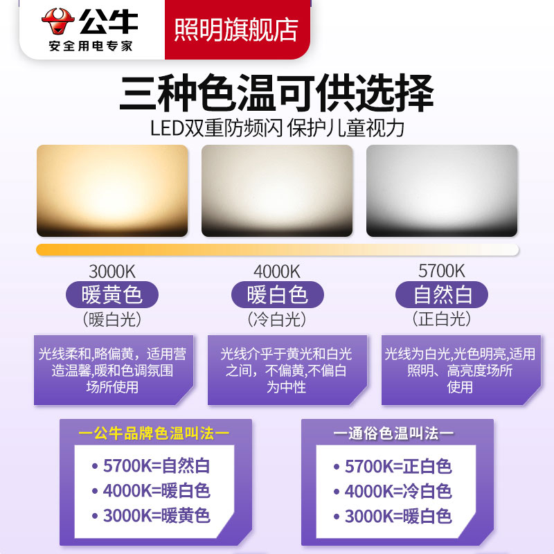 公牛led筒灯嵌入式 天花灯客厅走廊吊顶牛眼洞灯 家用三色变光薄款