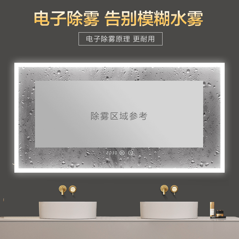 伯仑 轻奢铝框智能浴室镜洗手间除雾镜子卫生间防水led梳妆台灯镜