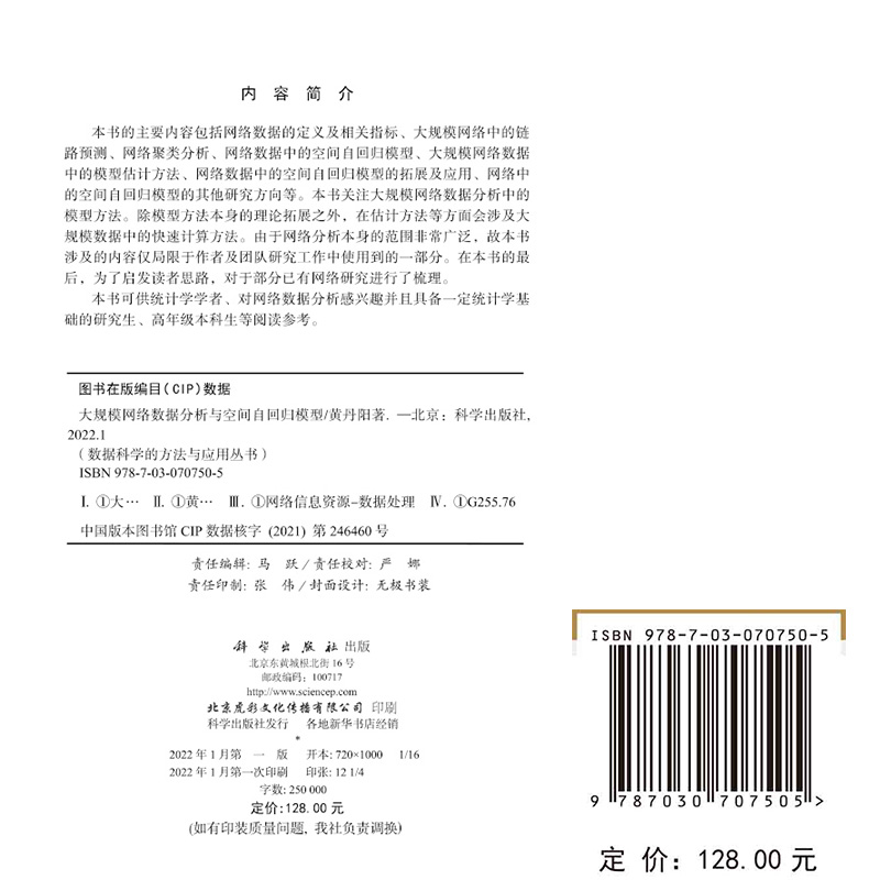 数据科学 大规模网络数据分析与空间自回归模型 方法与应用丛书 黄丹阳 社9787030707505 正版 科学出版 现货