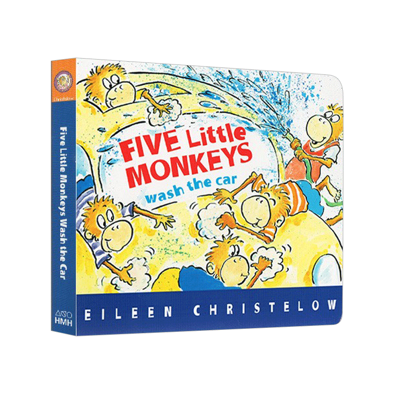 五只小猴子洗汽车 Five the 英文原版 纸板书 英文版 Monkeys 儿童英语启蒙图画故事书 Little 进口英语书籍 Wash 廖彩杏书单 Car