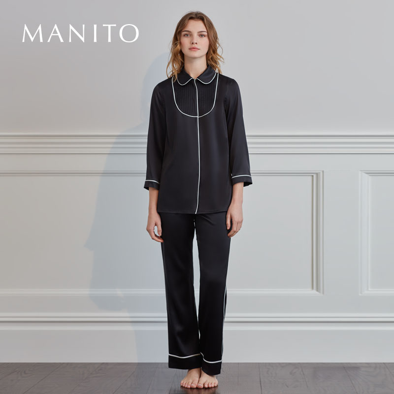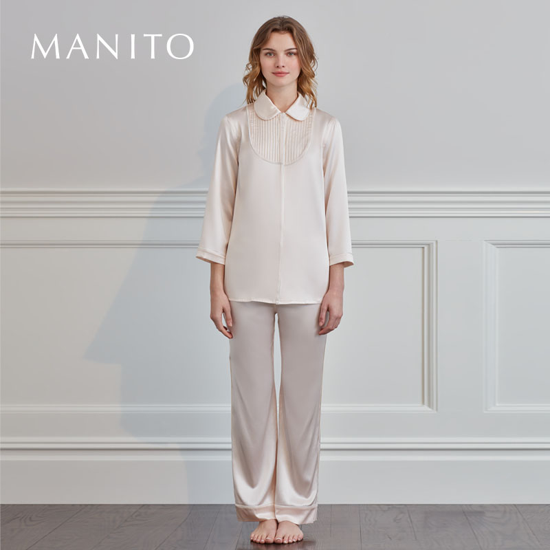 MANITO 曼尼陀真丝娃娃领Ripple睡衣桑蚕丝高级家居服