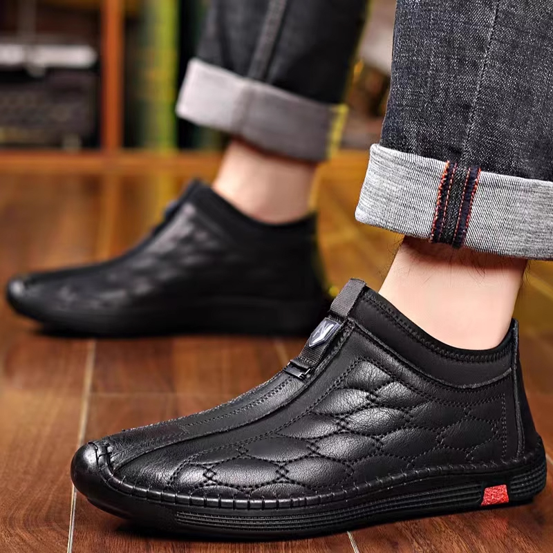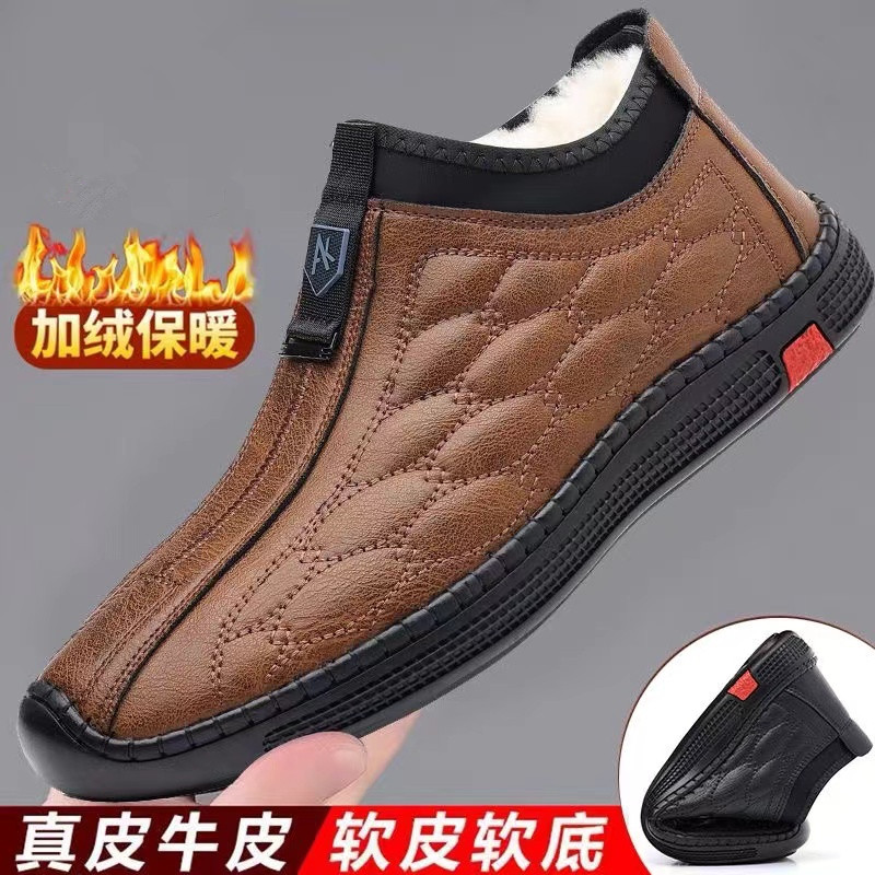 冬季 男防滑爸爸鞋 新款 男短靴真皮软底休闲皮鞋 加绒棉鞋 啄木鸟男鞋