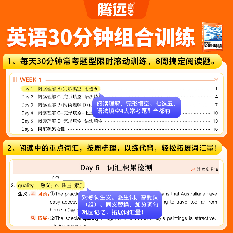 2026腾远高考英语30分钟组合训练 解题达人新高考英语必刷题 万唯高中高一高二高三英语专项训练阅读理解与完形填空语法填空七选五