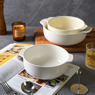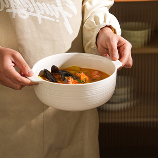 陶瓷双耳碗家用2025新款 纯白大号可微波盛汤炖汤碗酸菜鱼大盆汤碗