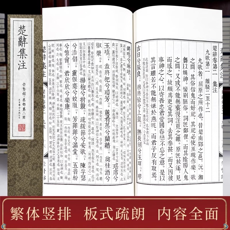 崇贤馆藏书 屈原著楚辞集注楚辞鉴赏译注 楚辞集注 繁体竖排文白 中国古典诗歌总集古诗词鉴赏 朱熹注手工宣纸线装