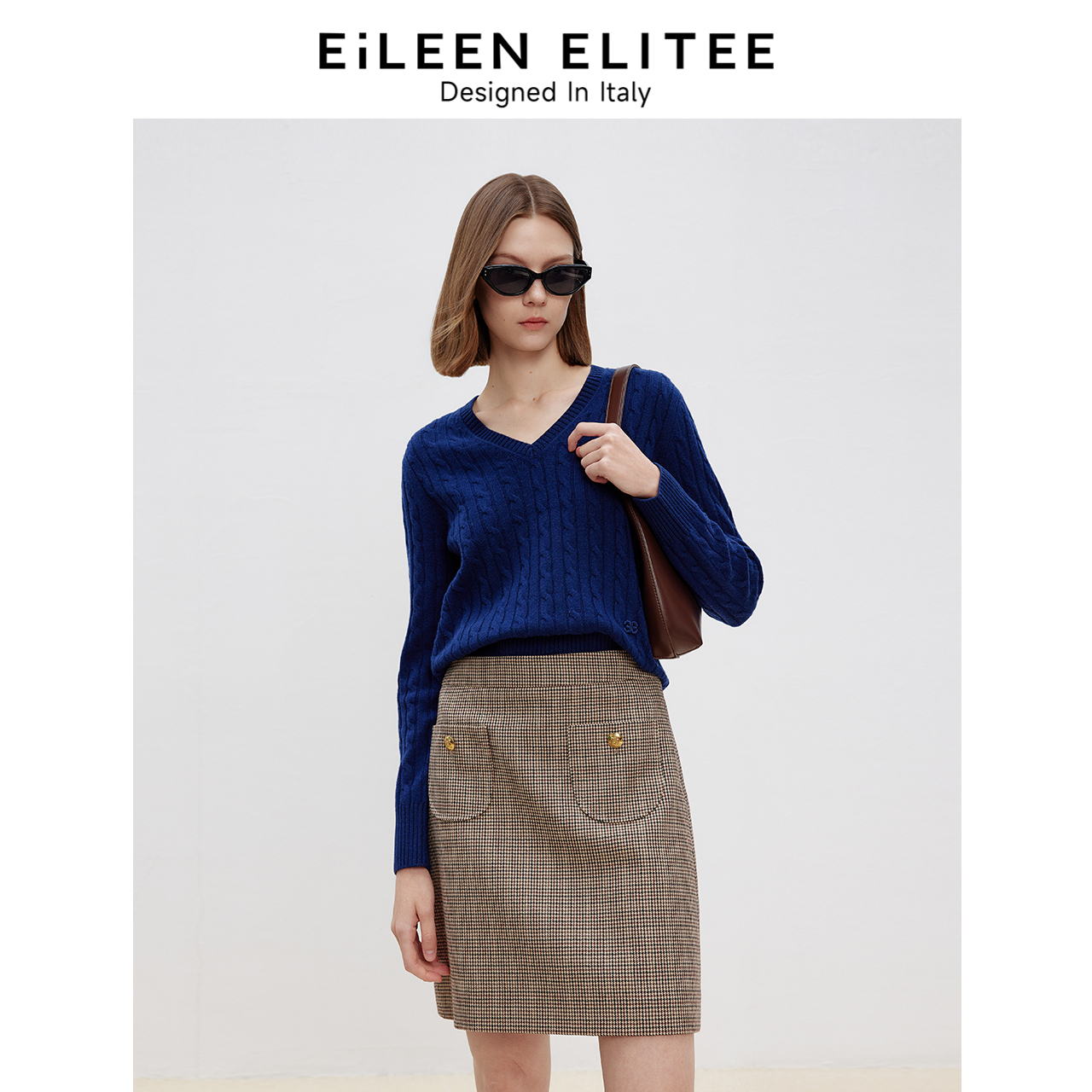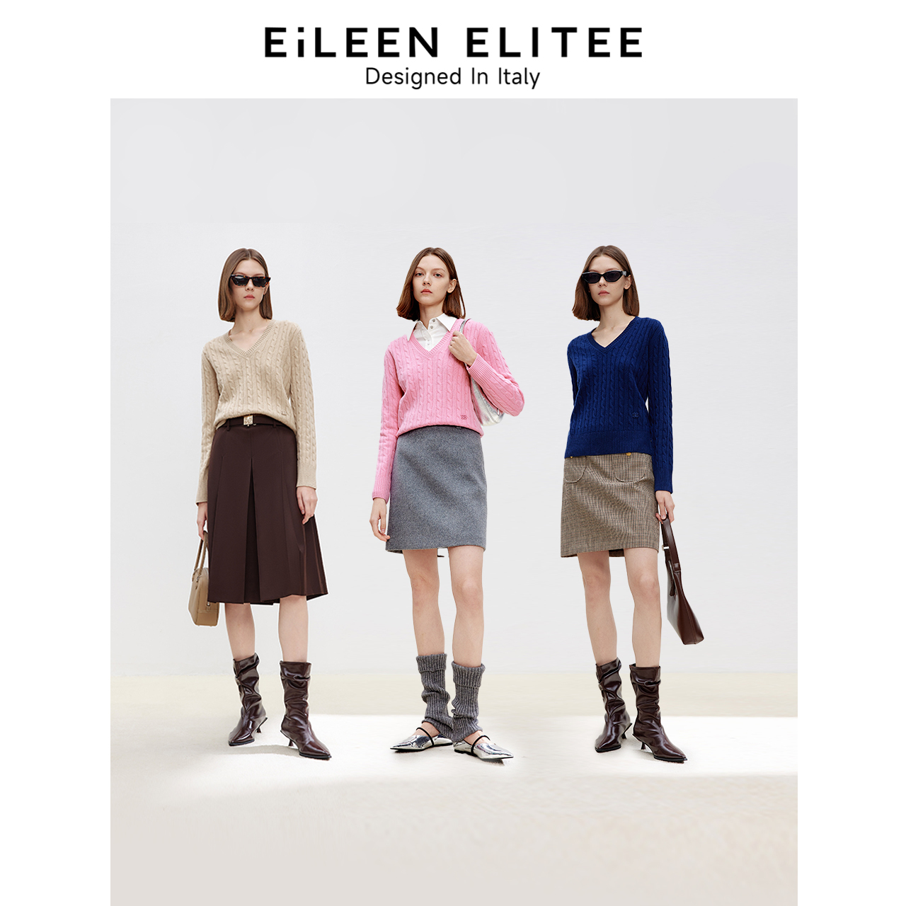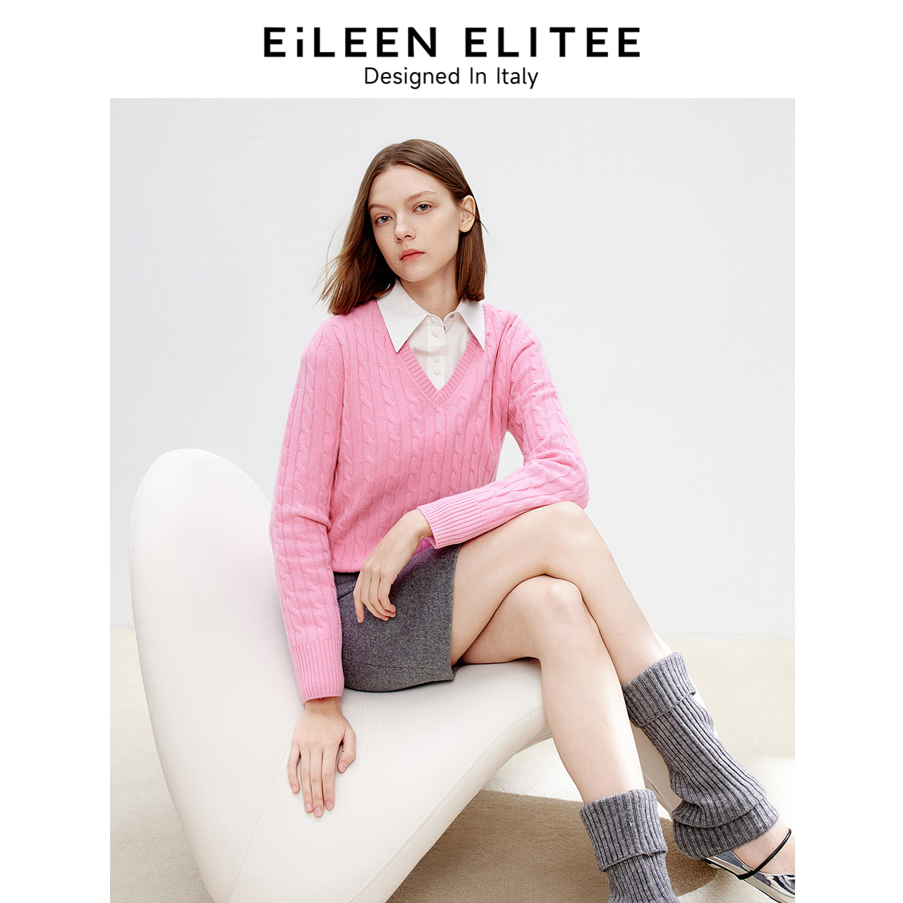 朗姿欧洲EiLEEN ELITEE纯羊毛高级感气质上衣v领毛衣2025春新款