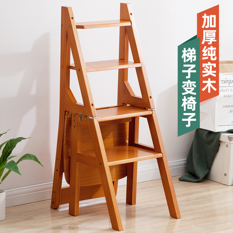 实木梯椅家用梯子椅子折叠伸缩两用梯凳室内登高多功能人字梯楼梯