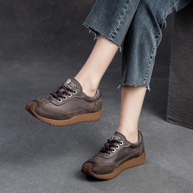 厚底松糕系带增高1008 真皮休闲百搭摇摇鞋 吉祥鸟超轻女鞋 2025新款