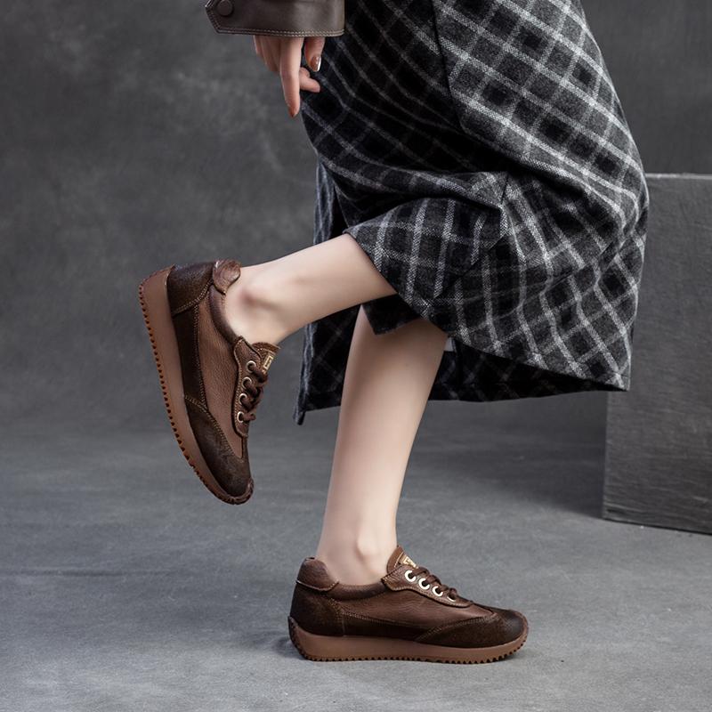 2025春秋妈妈鞋 女鞋 一脚蹬摇摇鞋 坡跟松糕鞋 女小皮鞋 真皮厚底单鞋