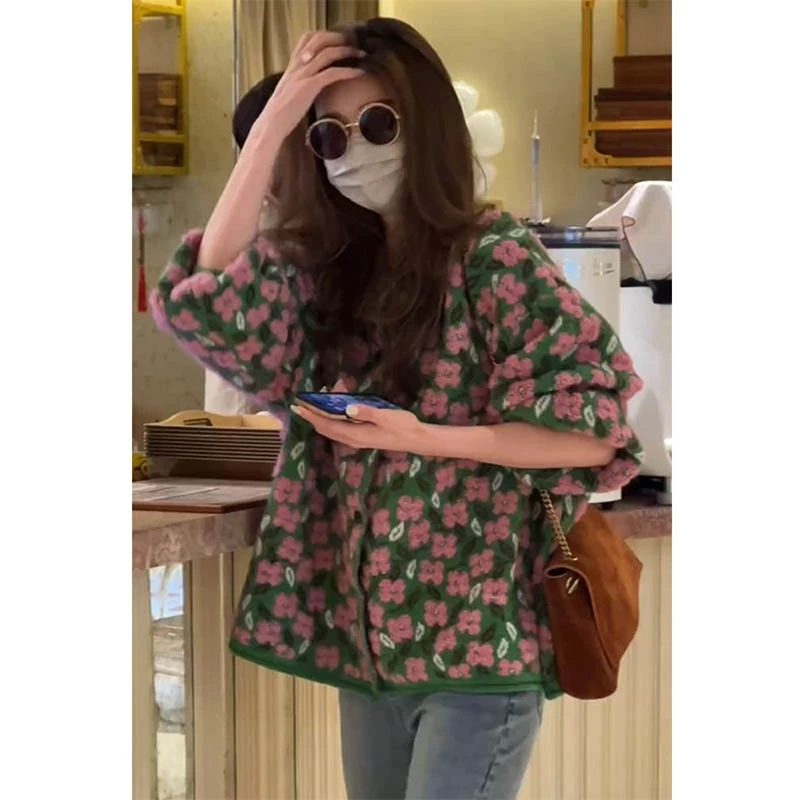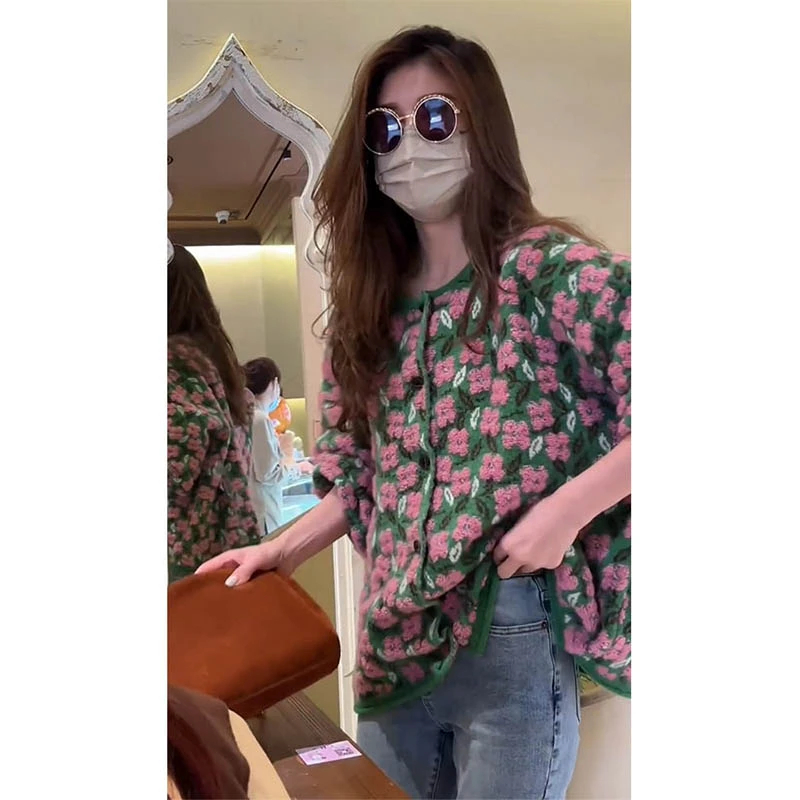 外套女 花朵春秋针织开衫 法式 独特别致上衣超好看减龄漂亮洋气小衫