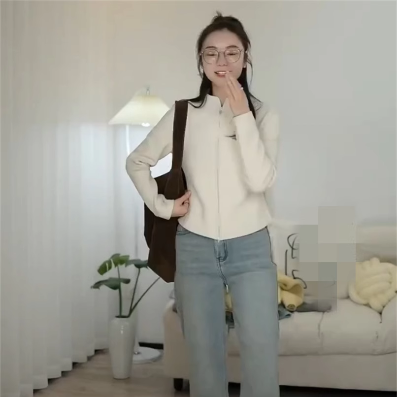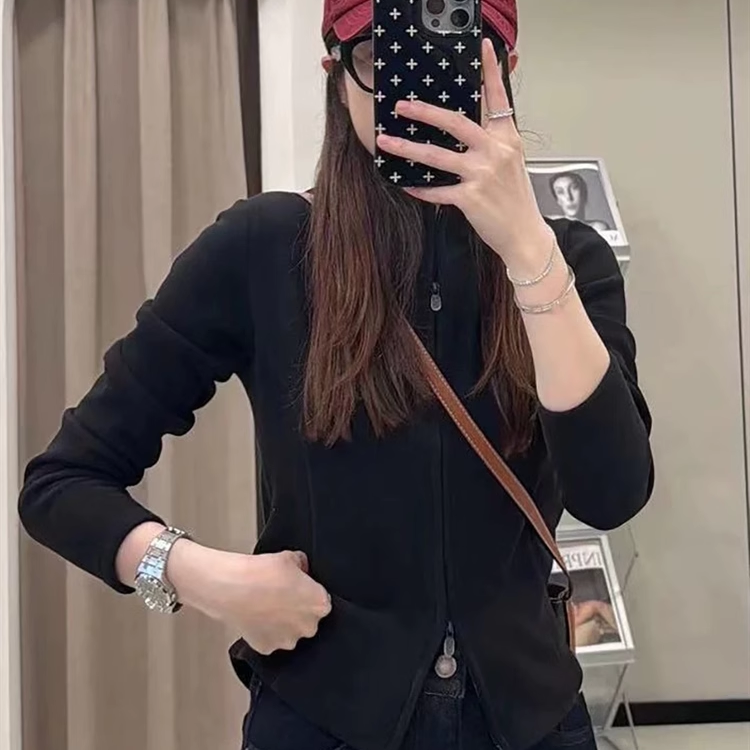 小蛮腰显瘦打底开衫 春秋新款 高级感双拉链加厚卫衣短外套女装 正品