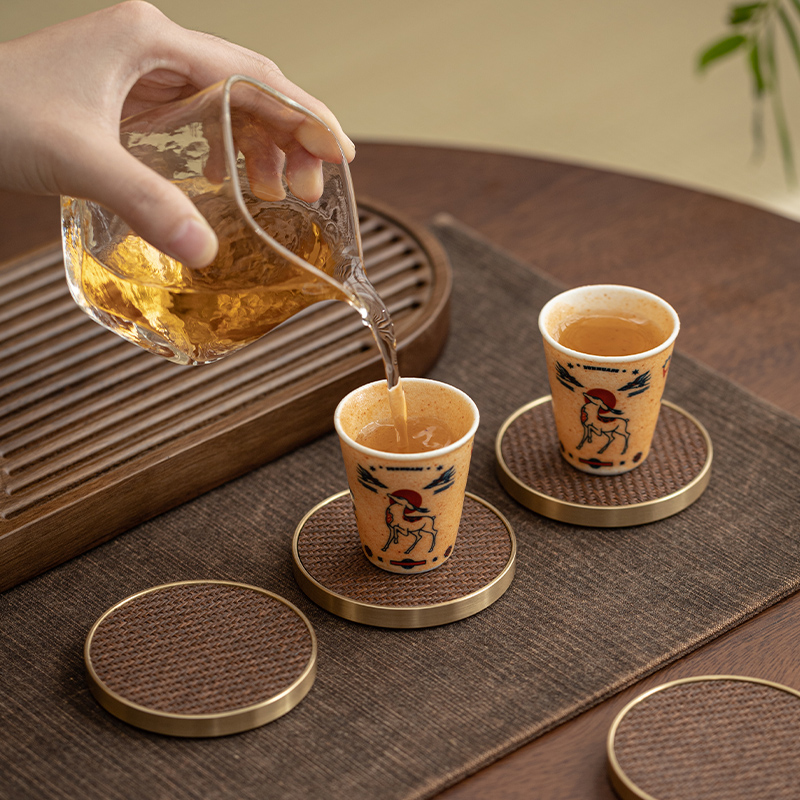 晟窑新款 茶托茶具茶道配件 功夫茶杯垫隔热垫纯铜镶嵌电木杯托日式