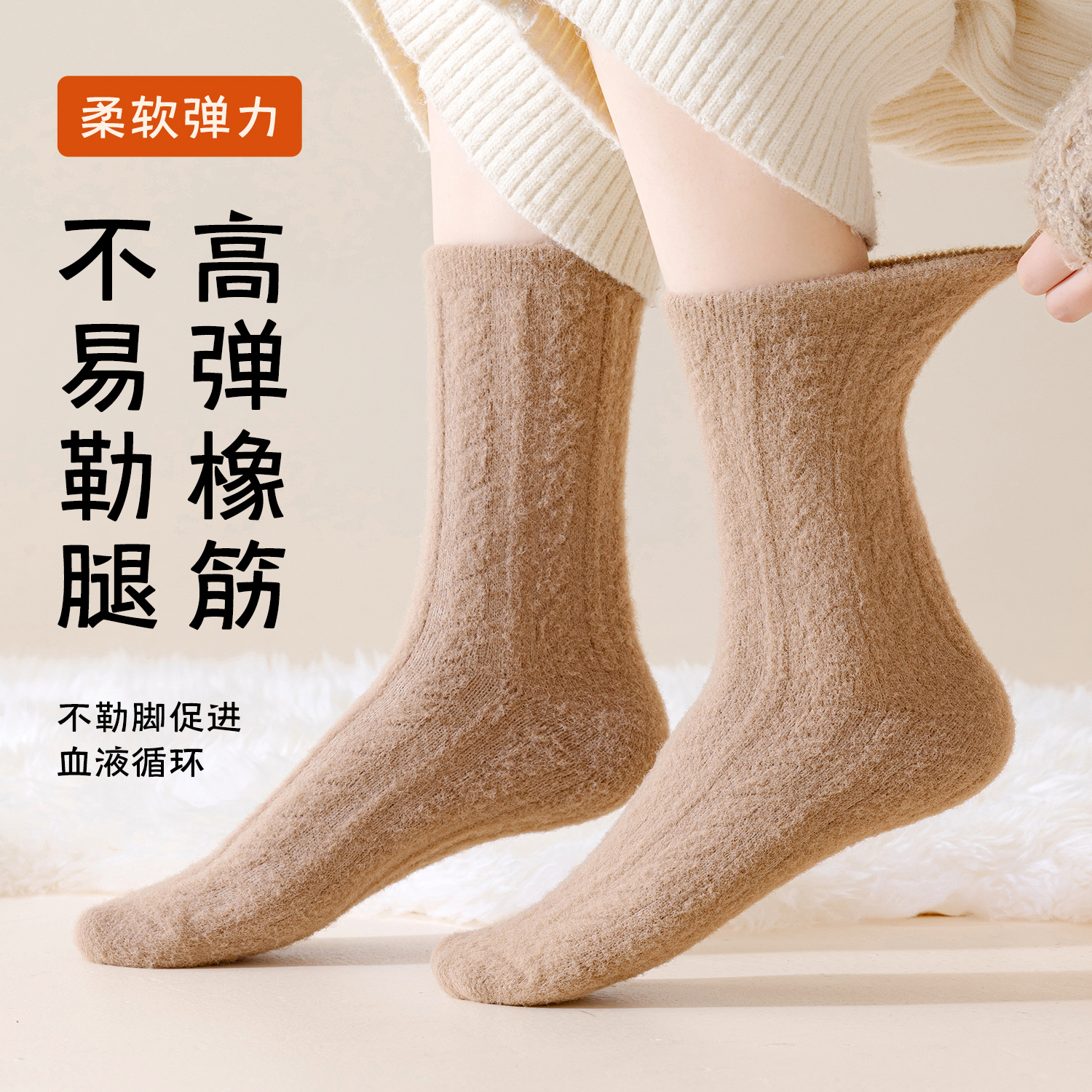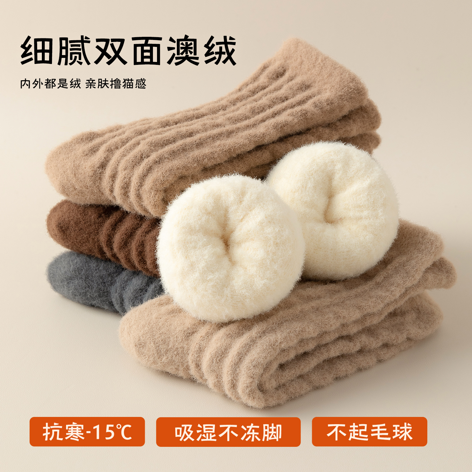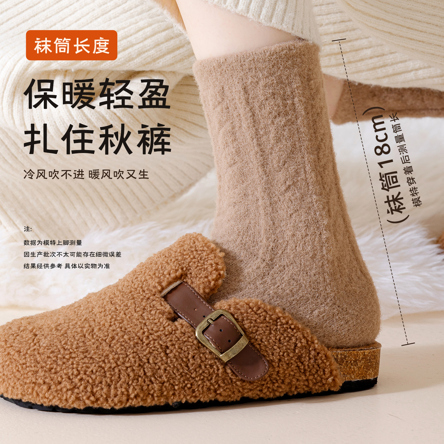 澳绒袜子女秋冬款 长袜毛绒居家睡眠月子袜加厚加绒冬天保暖中筒袜