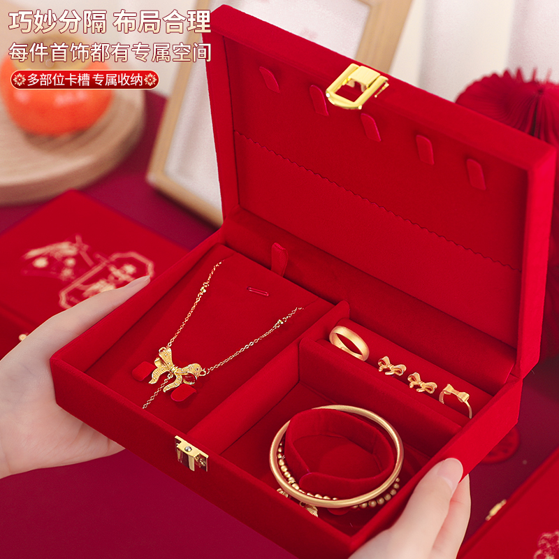 婚嫁三金首饰盒礼品袋订婚黄金饰品盒子聘礼嫁妆盒结婚五金收纳盒